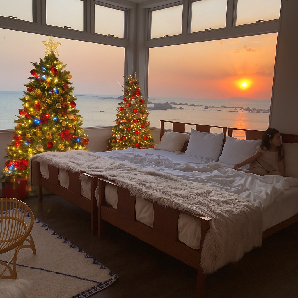 ✿ Christmas tree Hanging ribbons and snowy scenery From Germany