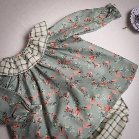CIES greenish plaid tunic & bloomer SET FROM SPAIN (original textile)