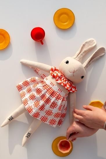PDC LARGE rabbit MINA (cream) block print ※入荷後の発送