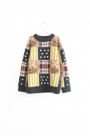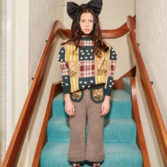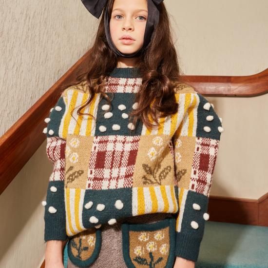 追加!Fish &kids FLOWERS POMPOM patchwork SWEATER ※10-11y