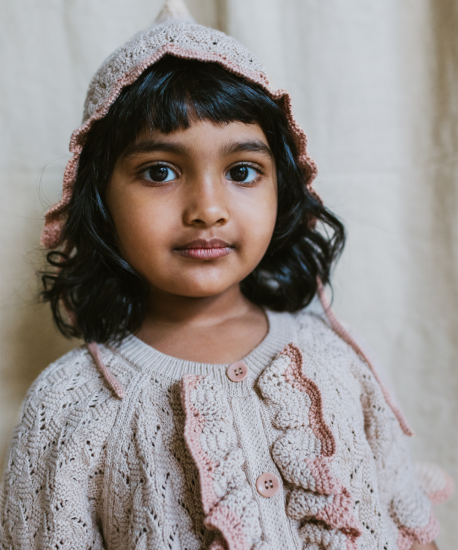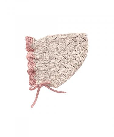 素材にこだわり、繊細な編み上げが特徴のこのボンネットは、