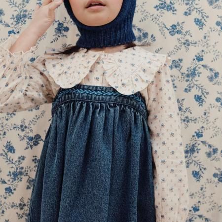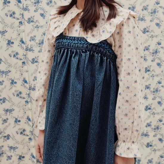胸元にたっぷりとギャザーを寄せたデザインと、さりげないフリル襟がエミールらしい上品な印象を引き立てます。