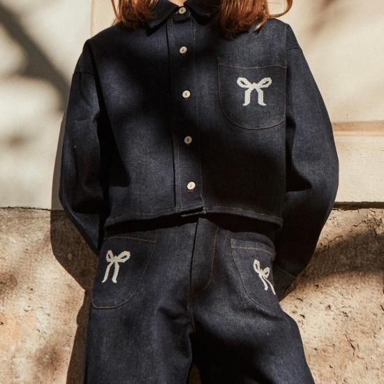 洗練されたラインと遊び心が出会う、リボン刺繍入りワイドデニムパンツ。