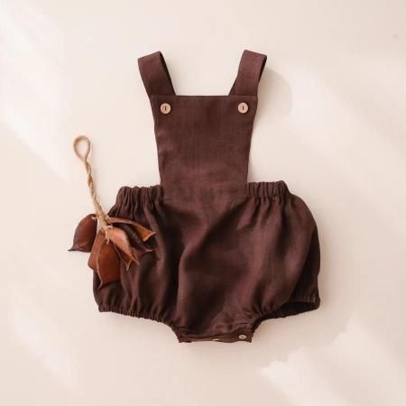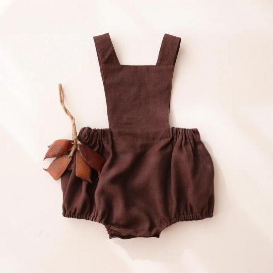 ✿ Dark Brown Linen Pinafore Romper(洋服カラー10色より選べます)