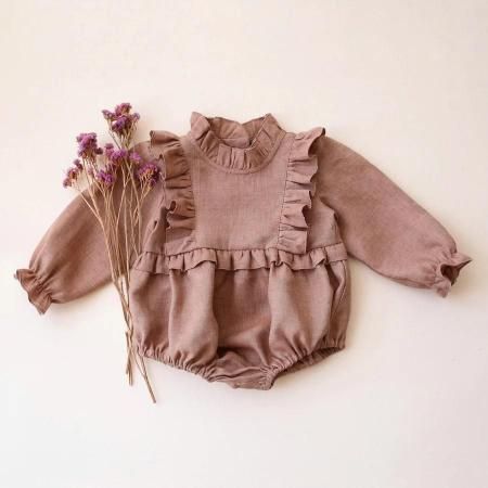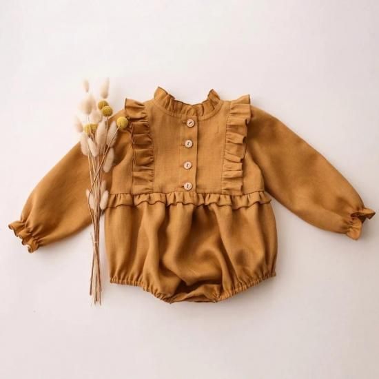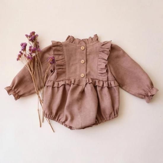 ✿ Linen Long Sleeve Frills Bodice Bubble Playsuit(洋服カラー10色より選べます)