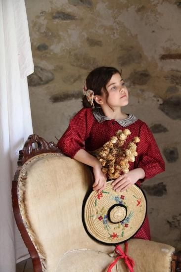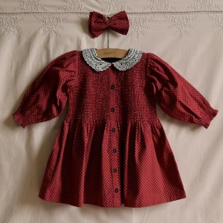 追加!Bonjour diary Tunique with Hairclip red wine dot print
