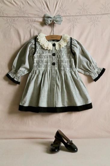 ✿ ストライプ柄の魅力:細めのブラックストライプが縦ラインを強調し、