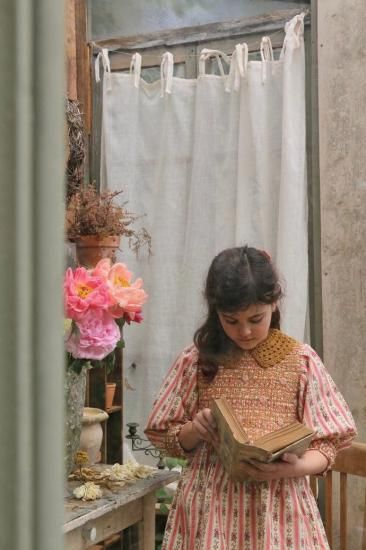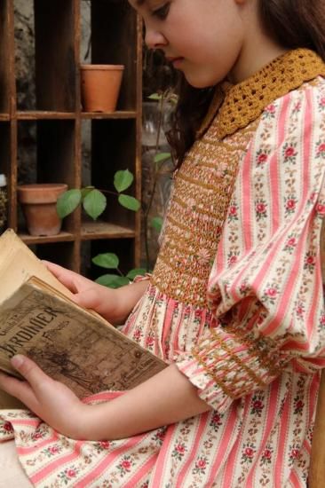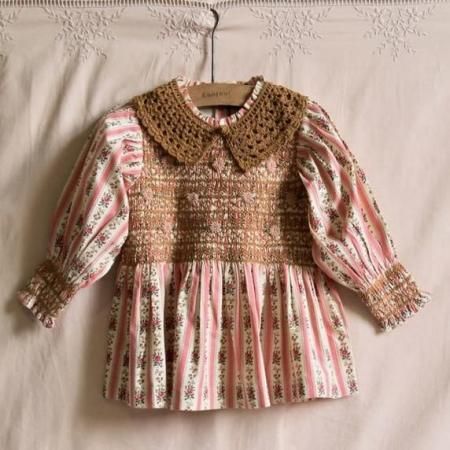 Bonjour diary handsmock blouse with crochet collar pink stripe print