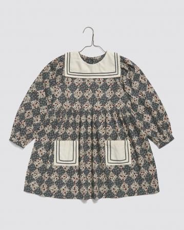 Our beautiful Eva sailor dress is made in our organic harlequin fabric. It has a