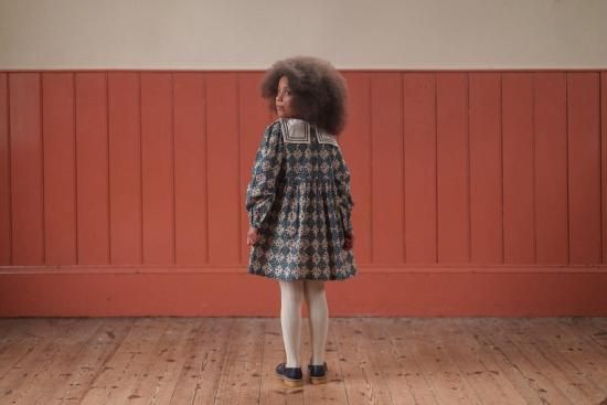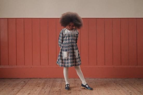 美しいエヴァのセーラードレスは、オーガニックのハーレクイン生地で仕立てられています。