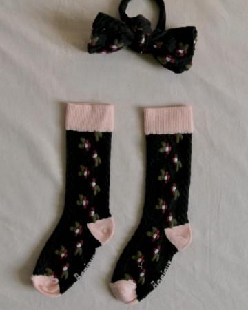 Bonjour diary  Socks&HAIR KNOT farandole flower (pink black)