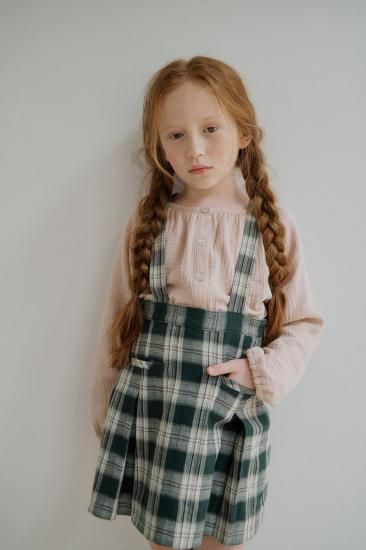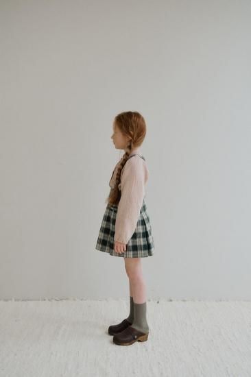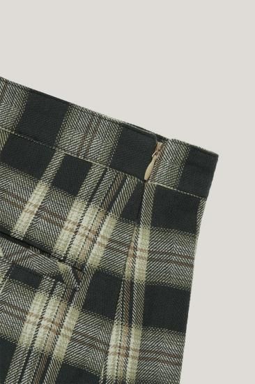 の存在感があります。 クラシックなチェック柄とハイウエストフィットの控えめなラインが合わさり、
